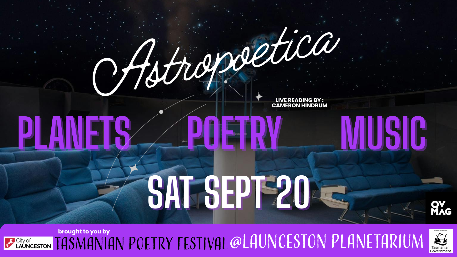 Experience a night where poetry, music, and the cosmos collide at Launceston Planetarium. Astropoetica, another lead-in event to the Tasmanian Poetry Festival, blends centuries of celestial verse into one powerful voice, set to music beneath a shimmering canopy of stars. ![]()