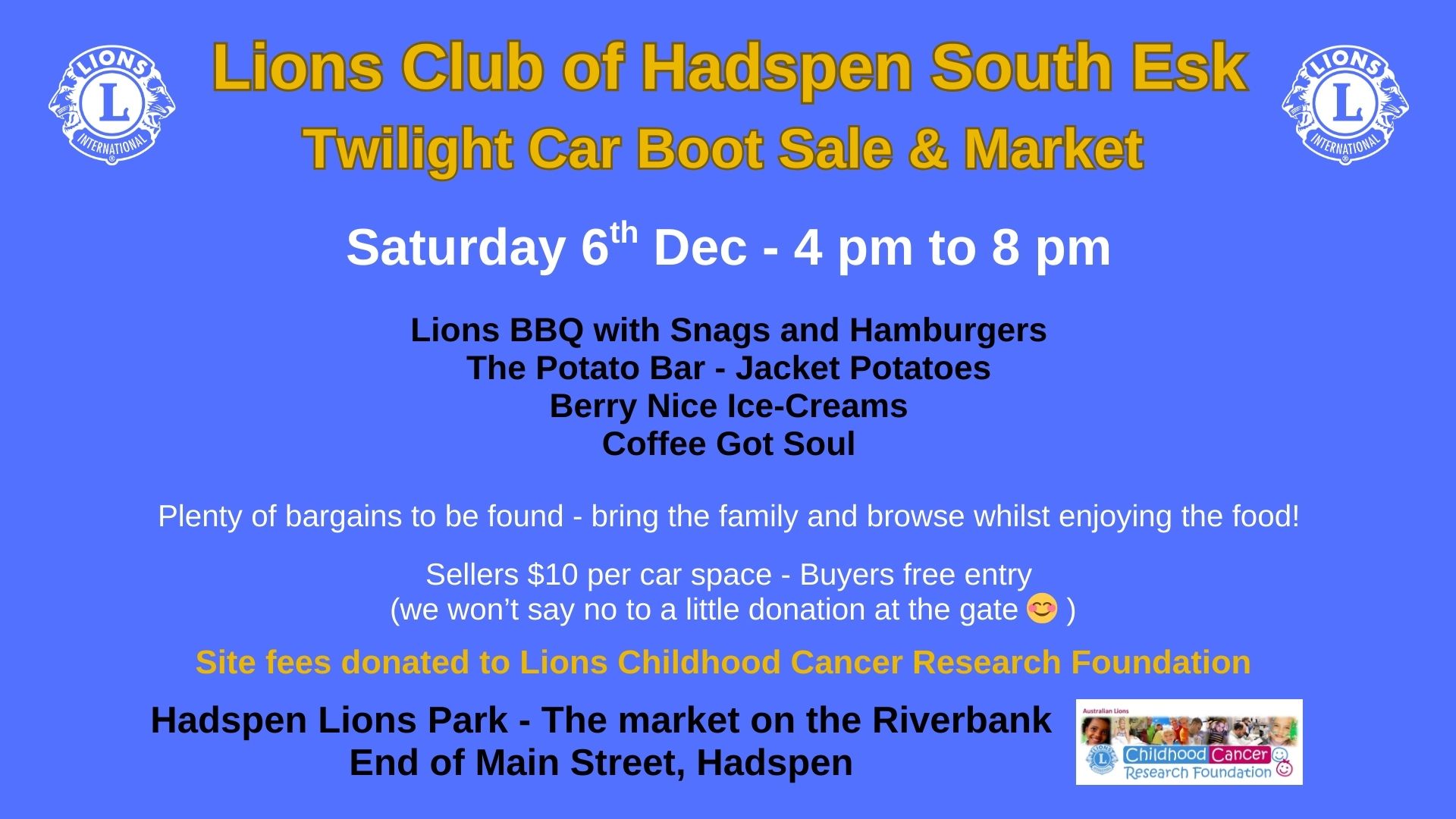 The Lions Club of Hadspen is hosting its popular Car Boot Sale and Market for the first time as a twilight event