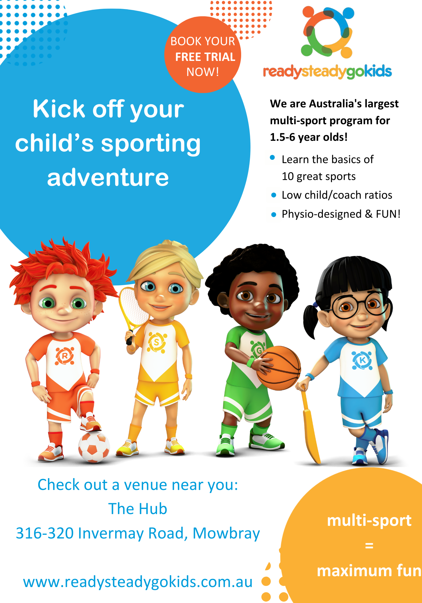 Ready Steady Go Kids is Australia’s largest multi-sport program for 1.5-6 yr olds.