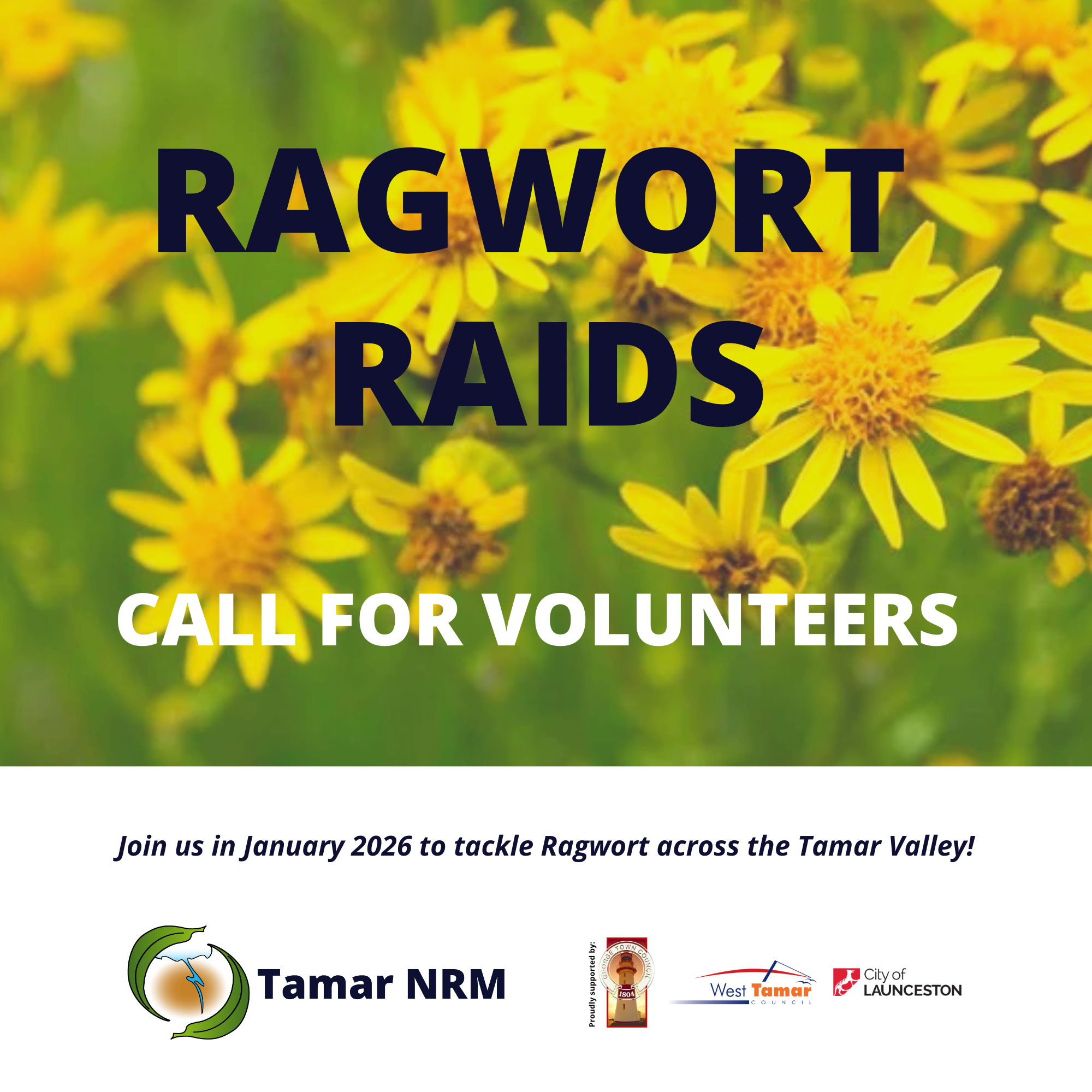 Tamar NRM’s 27th annual Ragwort Raid aims to control the spread of the declared agricultural and environmental weed, Ragwort (Jacobaea vulgaris).